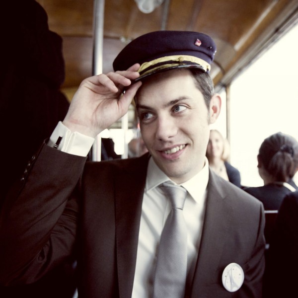 La tenue du marié: noeud papillon Forage, une chemise Club Monaco, un pantalon Made and Crafted by Levi’s avec des Vans !