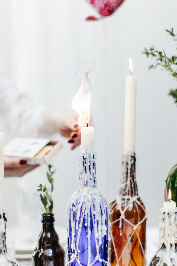 11. Ensuite, c’est la partie la plus rigolote : il suffit de faire fondre une autre bougie afin de créer des coulures. La plupart des cierges sont conçus aujourd’hui pour éviter, justement, ces coulures, il vous faudra donc un peu de temps pour les recréer artificiellement. C’est aussi simple que ça !