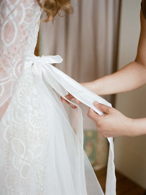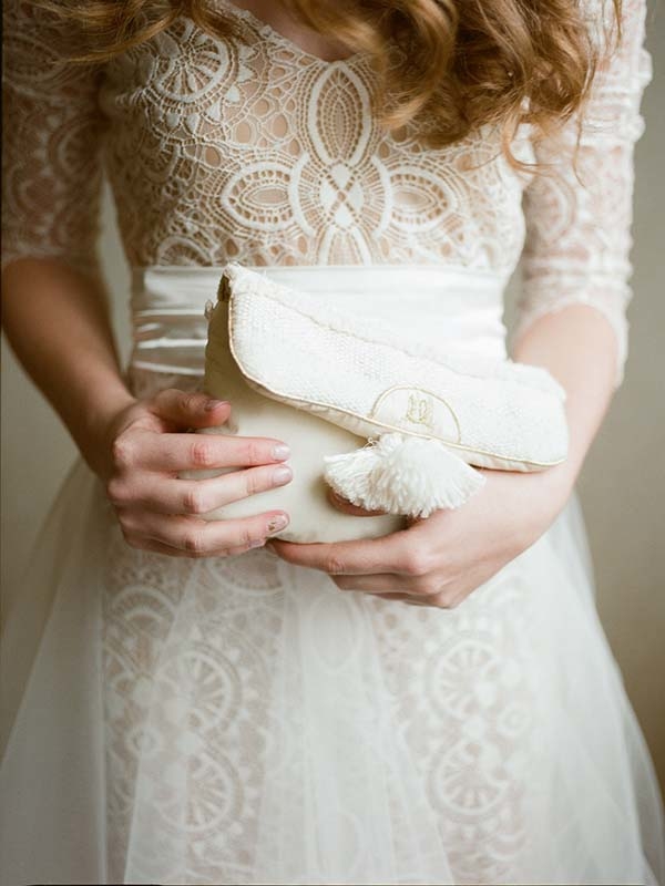 La tenue de la mariée : robe Josephine Bono, chaussures Dessine-moi un soulier, pochette de survie Maison le Lion