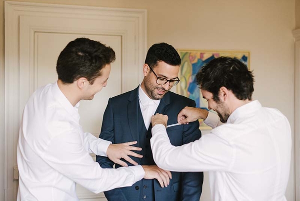 La tenue du marié : costume Sandro et le Colonel Moutarde pour le noeud papillon